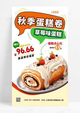 暖色渐变秋季蛋糕卷草莓味蛋糕蛋糕海报海报