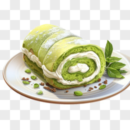 手绘抹茶瑞士卷免抠素材