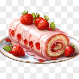 手绘草莓瑞士卷 免抠元素