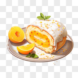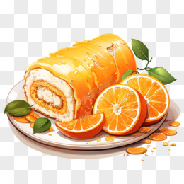 甜橙蛋糕水果瑞士卷蛋糕卷奶油果酱西点下午茶甜品元素