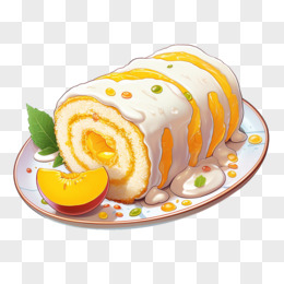 黄桃味瑞士卷水果蛋糕点心元素