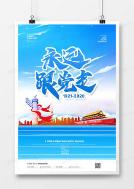 蓝色简约大气永远跟党走七一建党节宣传海报