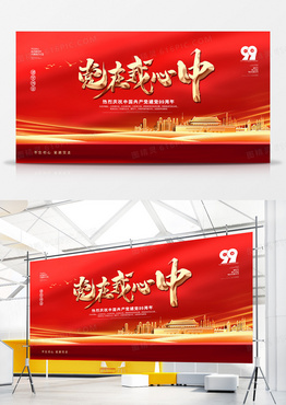 红色大气党在我心中七一建党节宣传展板