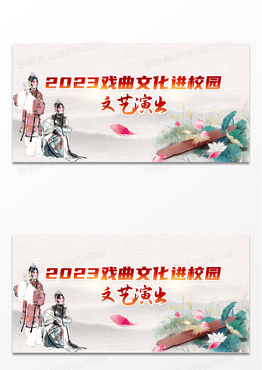 简约淡黄色背景水墨文艺风格戏曲展板文艺演出宣传