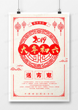 手绘大年初六传统习俗送穷鬼场景免抠元素