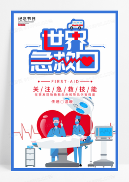 蓝色卡通世界急救日宣传海报