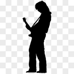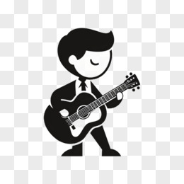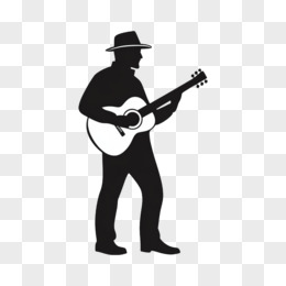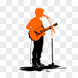 橙黑色剪影一个男孩在弹吉他唱歌免抠元素