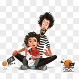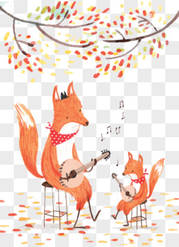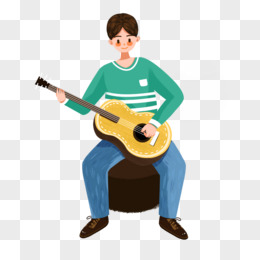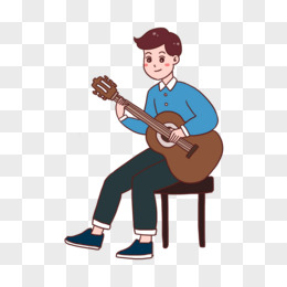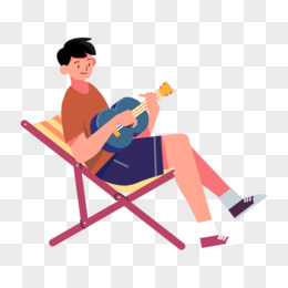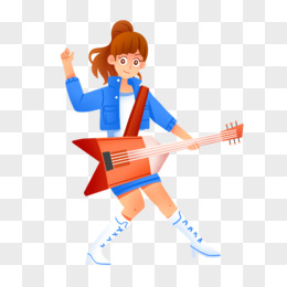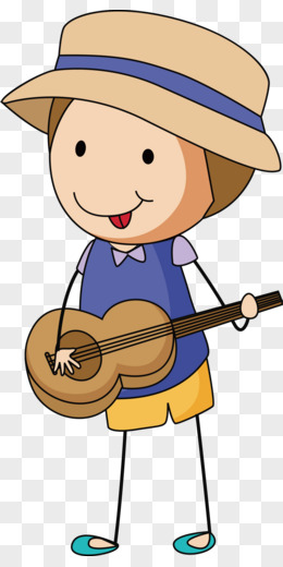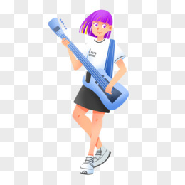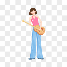 卡通手绘户外女孩搭帐篷弹吉他免抠元素