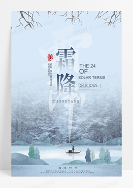 淡蓝色创意中国风二十四节气霜降节气海报