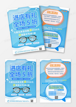 蓝色简约进店有礼优惠活动眼镜宣传单