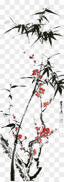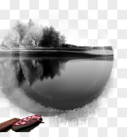 矢量手绘淡雅精美书卷水墨山川合成素材