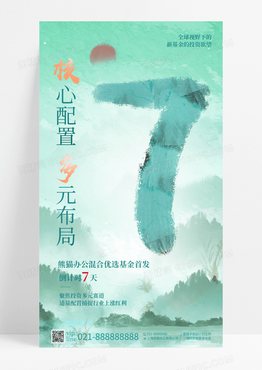 水墨中国风金融理财基金首发倒计时7天手机宣传海报