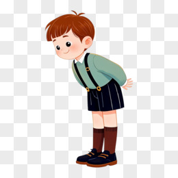 儿童插画小男生鞠躬道歉免抠元素