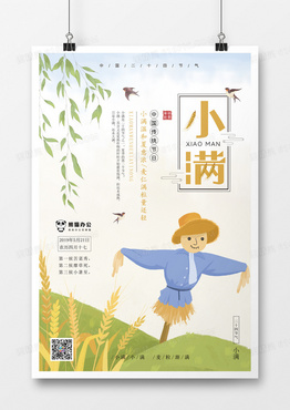 卡通插画小满二十四节气海报