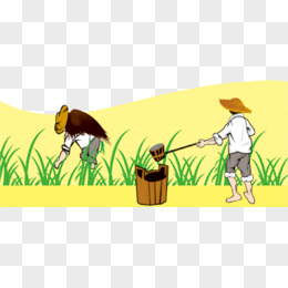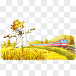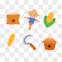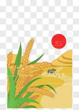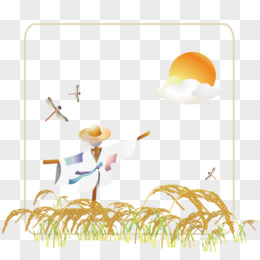 立秋之手绘卡通女孩扒开稻田中的小麦