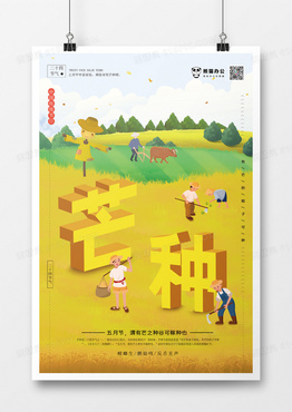 手绘插画风梯田绿色麦穗云纹燕子免抠元素