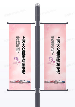粉色渐变上汽大众钜惠购车专场七夕汽车道旗