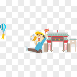 卡通手绘可爱小姐姐导游带着孩子们旅游元素