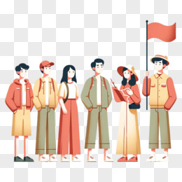 插画风小情侣参加冬令营活动场景元素