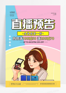 卡通撞色插画化妆品直播平台带货直播预告海报图片