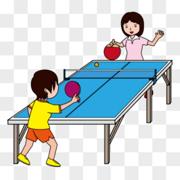 手绘卡通两个打乒乓球的小男孩小女孩免抠元素