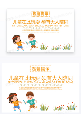 清新卡通儿童在此玩耍须有大人陪同温馨提示