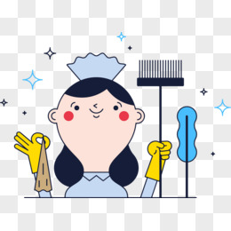 手绘卡通小年习俗家人一起大扫除场景免抠素材