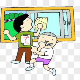 手绘插画学生打扫卫生摆乐队姿势免抠素材