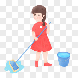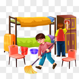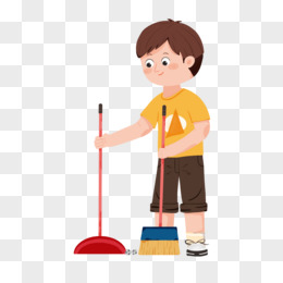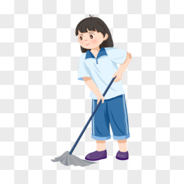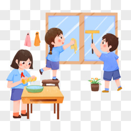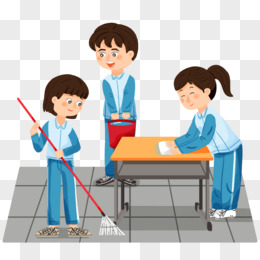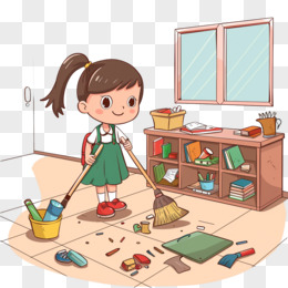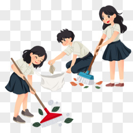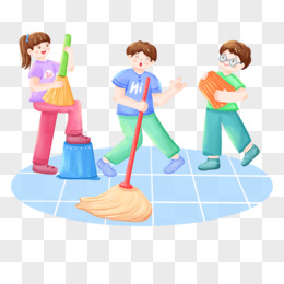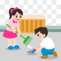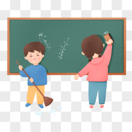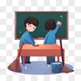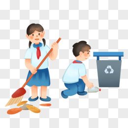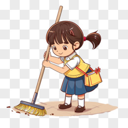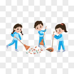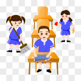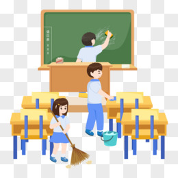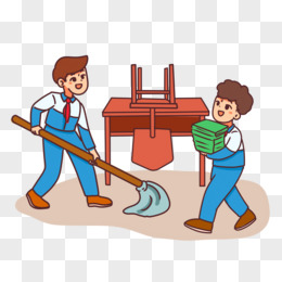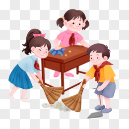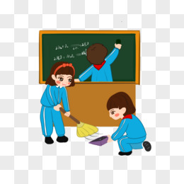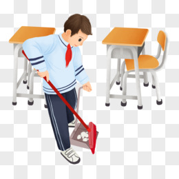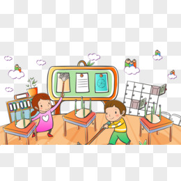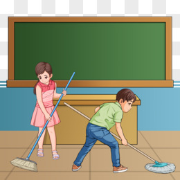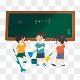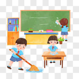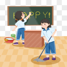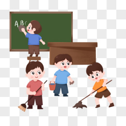 卡通手绘学生勤劳打扫教室卫生免抠元素