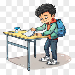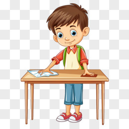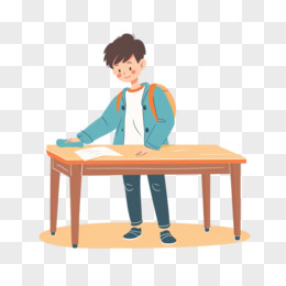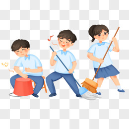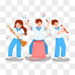 手绘插画学生打扫卫生摆乐队姿势免抠素材