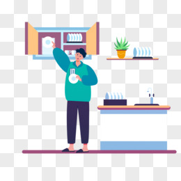 卡通手绘整理房间擦桌子人物场景元素