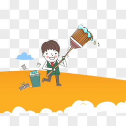 手绘男孩扫地插画素材