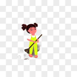 手绘女孩拖地免抠元素
