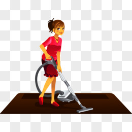 手绘插画男生用吸尘器打扫卫生免抠素材