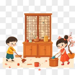 手绘插画保洁阿姨擦桌子打扫卫生免抠素材