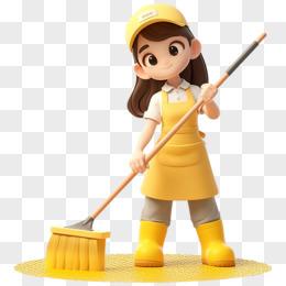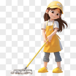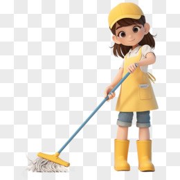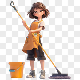 3D立体女孩打扫卫生场景元素