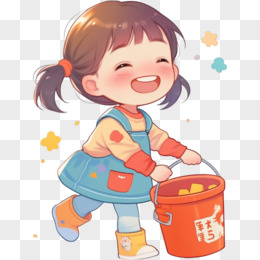 手绘男孩拿着水桶打扫卫生免抠元素