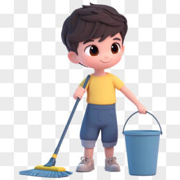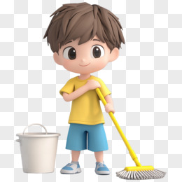 3D立体男孩打扫卫生拖地