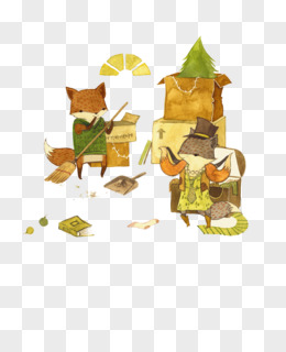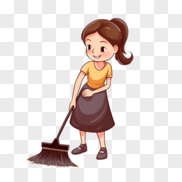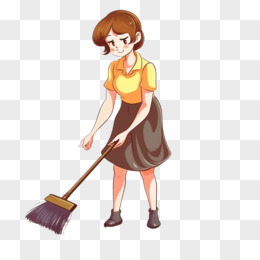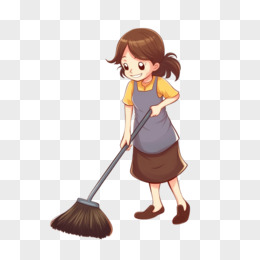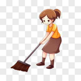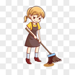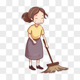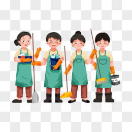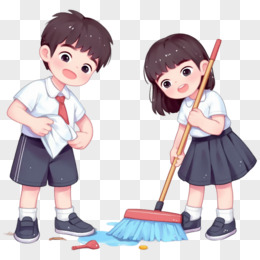 手绘插画学生打扫卫生摆乐队姿势免抠素材