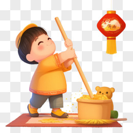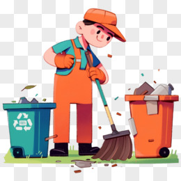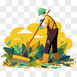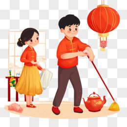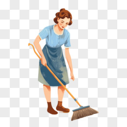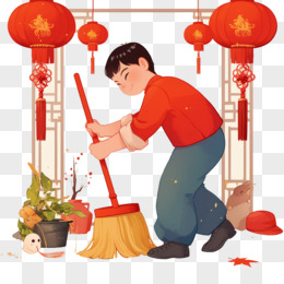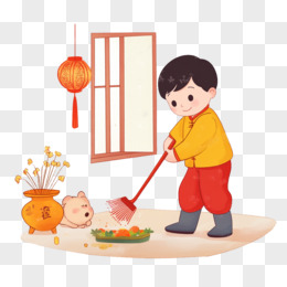 手绘插画男生用吸尘器打扫卫生免抠素材