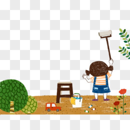 一组手绘学生形象上劳动课的各种劳动项目插画套图合集元素四