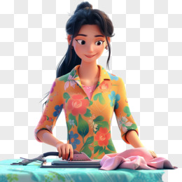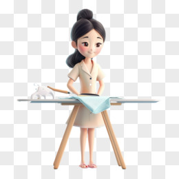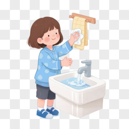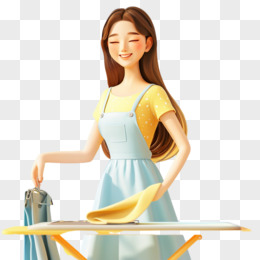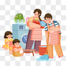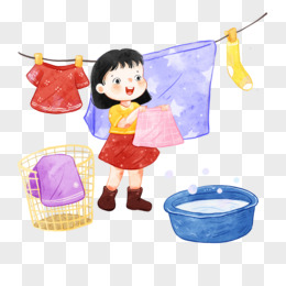 手绘插画妈妈洗好衣服晾晒免抠素材