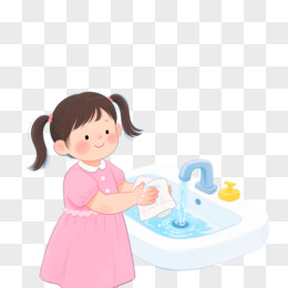 手绘卡通父女贴窗花擦窗户插画免抠元素