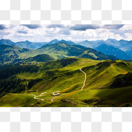 蓝天白云绿色大山