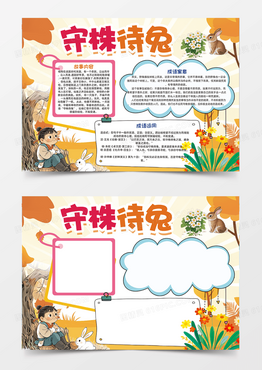橙色守株待兔可爱卡通成语故事寓言故事教育意义手抄报