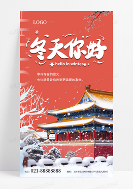 你好冬天冬天雪景故宫雪景海报大雪纷飞手机海报模版