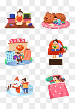 一组卡通女大学生快乐时光寒假生活集合系列四元素
