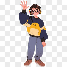 卡通活大学男孩戴眼镜免抠元素