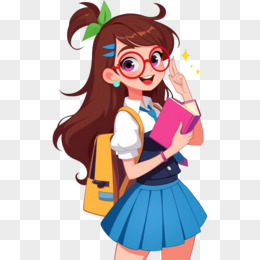 卡通活力四射的大学女孩戴眼镜免抠元素