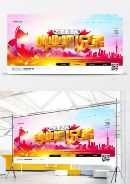 创意时尚创业吧兄弟大学生创业宣传展板